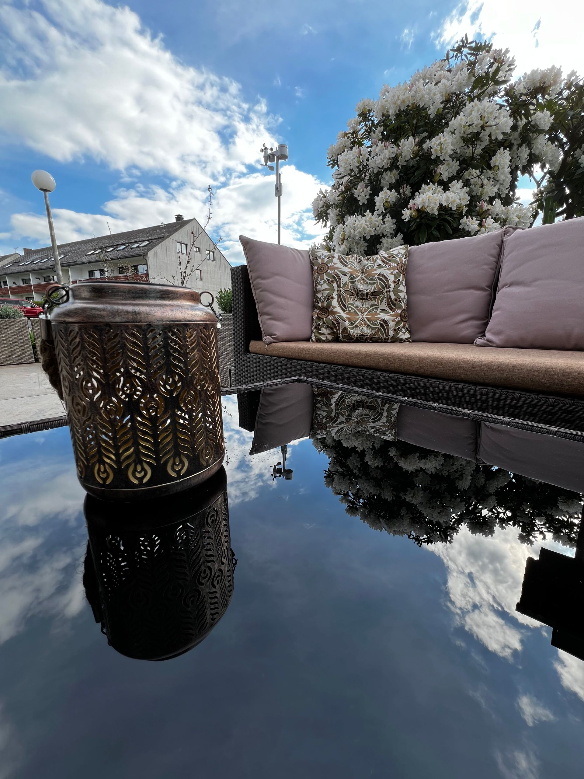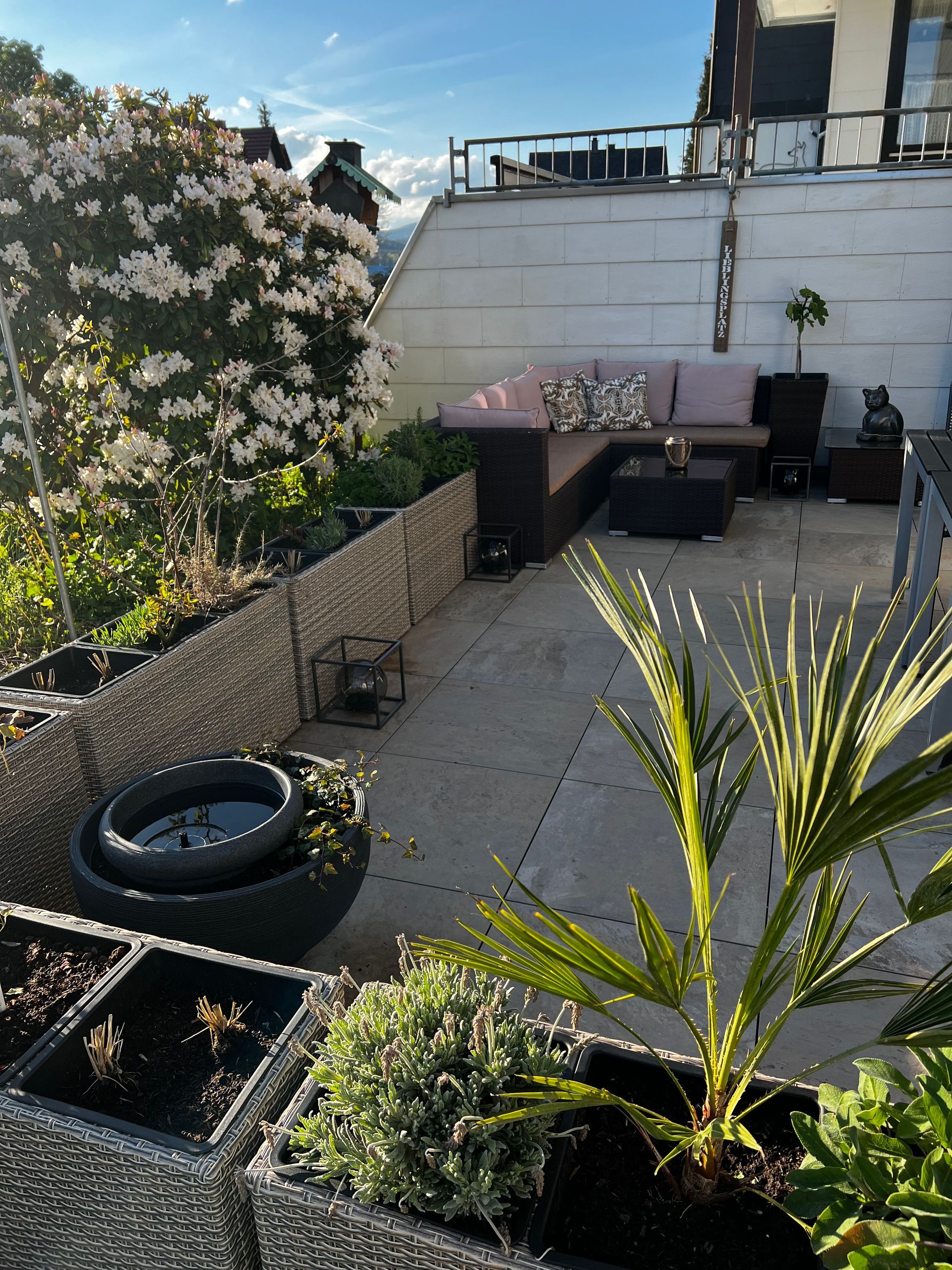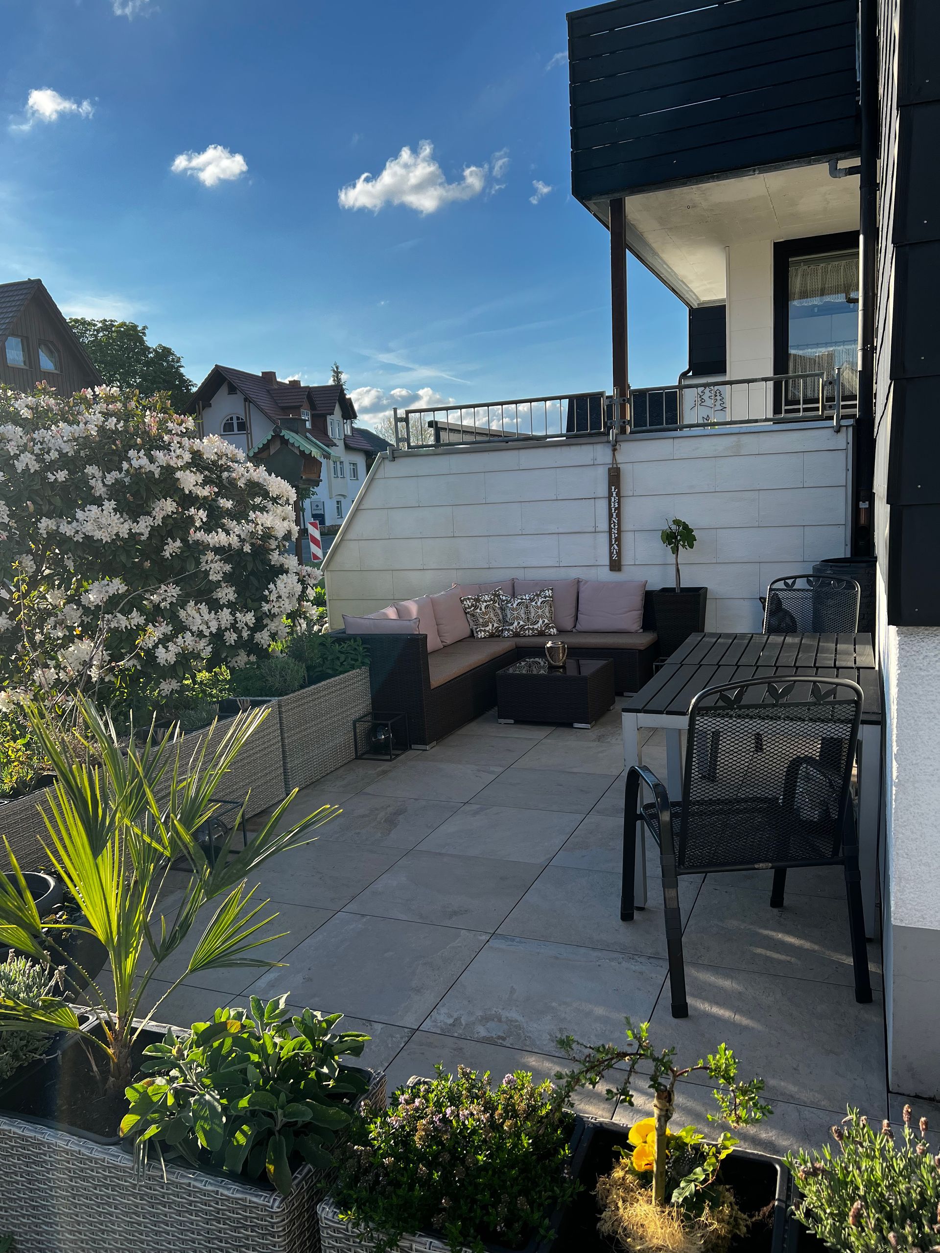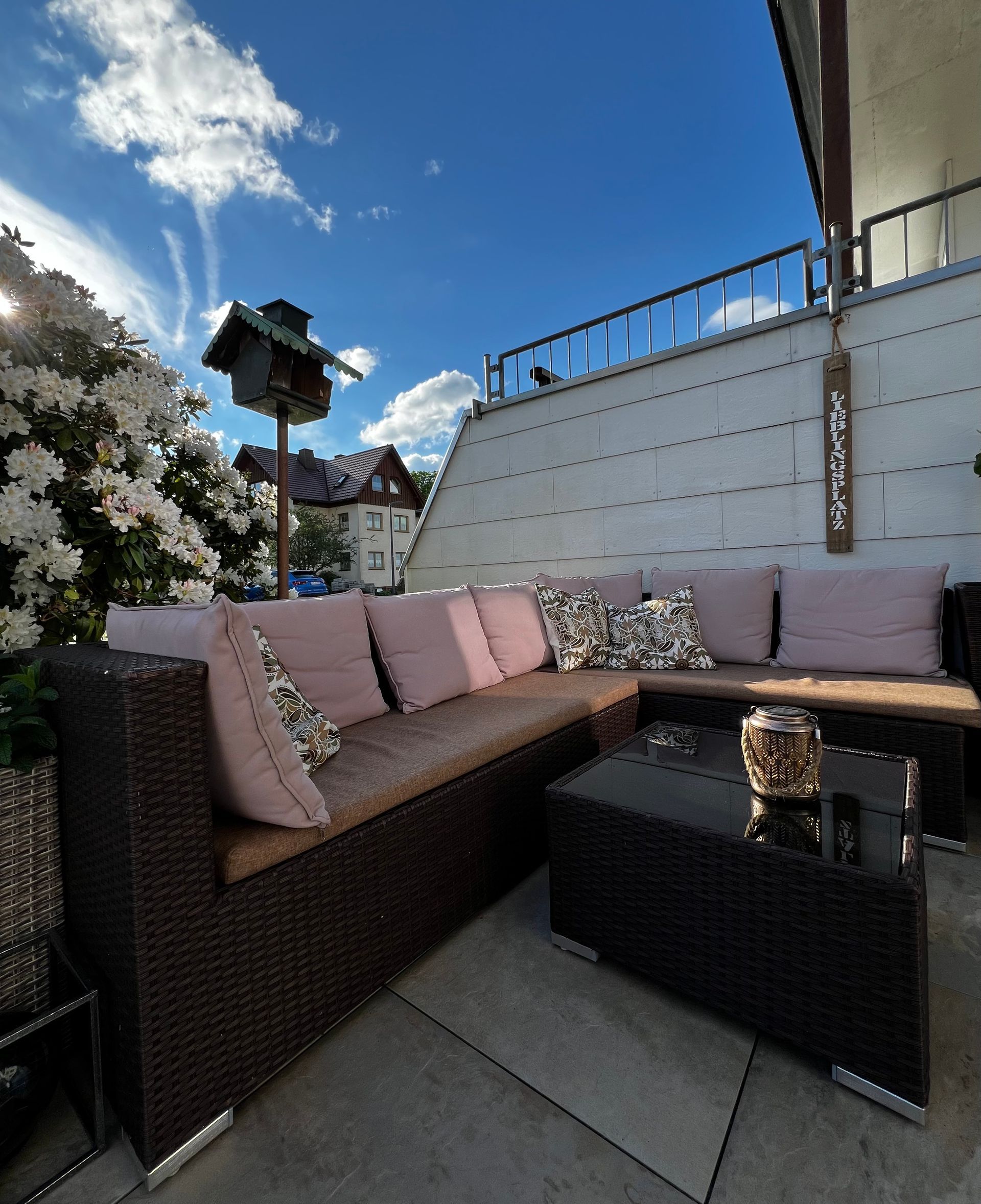 Das funktioniert hervorragend in unserer Kuschelecke im Wohnbereich auf der mittleren Ebene oder auf unserer geräumigen Terrasse.